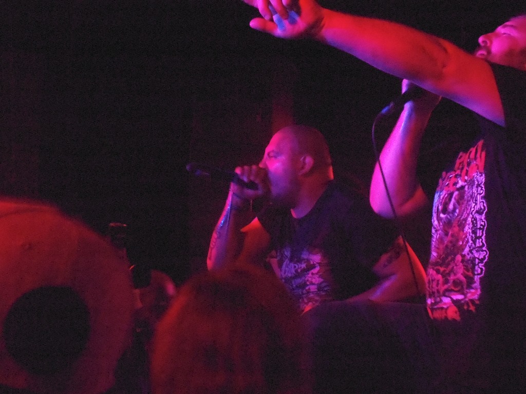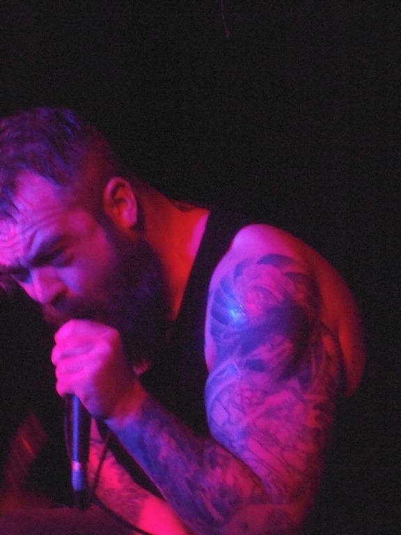 Next up, Stoneghost, sporting beards, vests, tattoos, and knee-length shorts take to the stage with a holler of “Leeeeeds! How the fuck is everyone?” Everyone is fucking melting, as it happens, and the relatively restrained response is by no means an indication of a lack of appreciation. In comparison to By Any Means, Stoneghost are sonically denser, the guitar lines more technical, the drums more frenetic, the sound more brutal, and the front man more bullish. He’s got a mean look, and I certainly wouldn’t mess with him. But for all the thunder and aggression, they’ve got some monster choruses, and they earn themselves a one-man slam-dancing moshpit for their efforts.