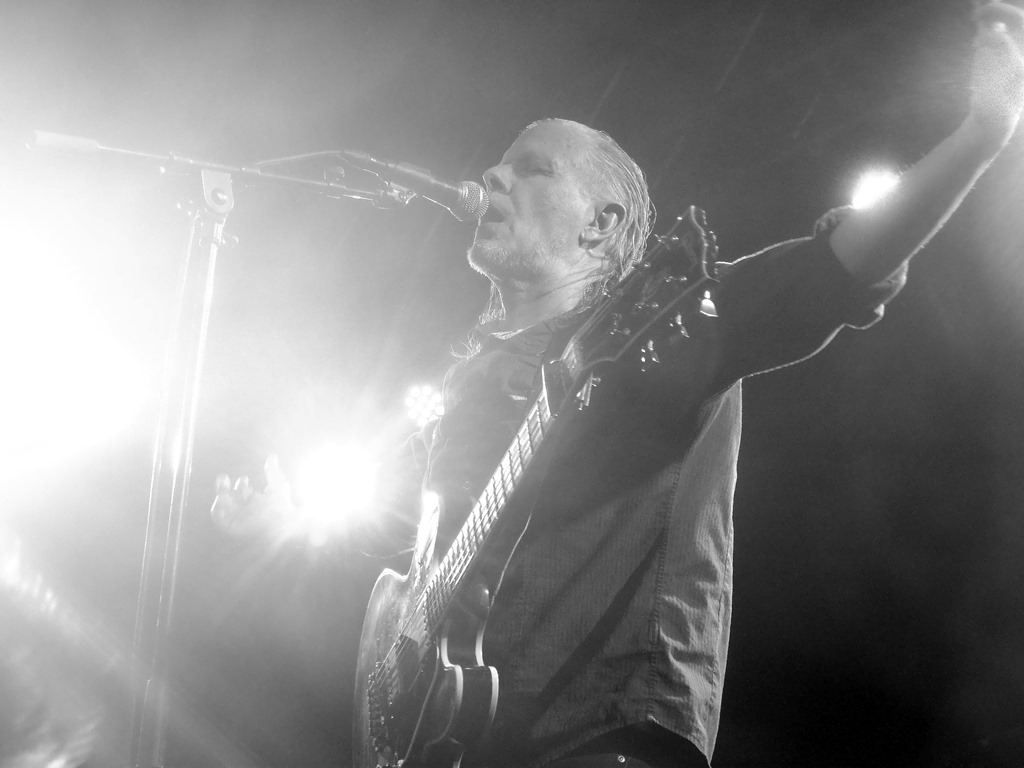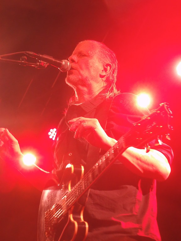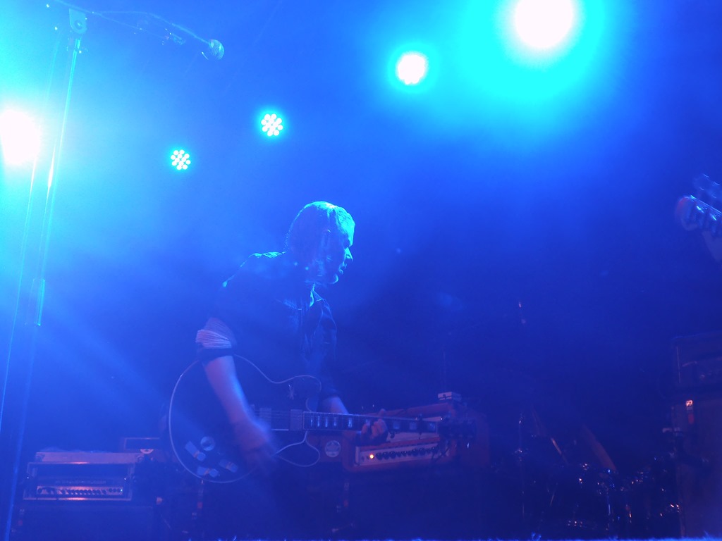 Perhaps even more than on the swirling, two-hour long exploration which is The Glowing Man, the band’s – and no doubt given his recent comments about the future direction of the Swans project in its next phase – Gira’s growing interest in evolving a more abstract style of musical form is placed into sharp relief over the course of this endurance test of a set comprising a mere five pieces and with a duration fractionally in excess of two and a half houurs. He has the lyrics on laminated A4 sheets on a stand in front of him, but his vocal utterances are few and far between, and when not consisting of wordless drones and ululations, the syllables are elongated to abstraction and unintelligibility. This isn’t a problem or a criticism: it simply illustrates Gira’s move towards exploring the language of sound without the need for actual language.