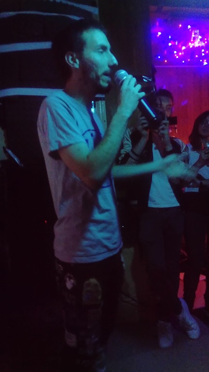 Casting sheets of paper to his feet like brutal and chunky confetti, live, clothed punk poet Henry Raby seems to have been taking performance tips from yours truly, and one of the three new pieces aired tonight takes cues in the opening segment from criminally underrated local performer Lawrence O’Reilly – but then, creativity in the postmodern age is all about drawing material from a wide range of sources and intertextuality isn’t simply about what’s written, and Henry’s style seems to be evolving. The last time I saw him was at that Dream Nails gig in a 400-capacity venue. It’s often more difficult to perform to a small audience, especially in a small space, but a seasoned performer, he does a decent job of it, firing out nuggets of socio-political commentary with energy.