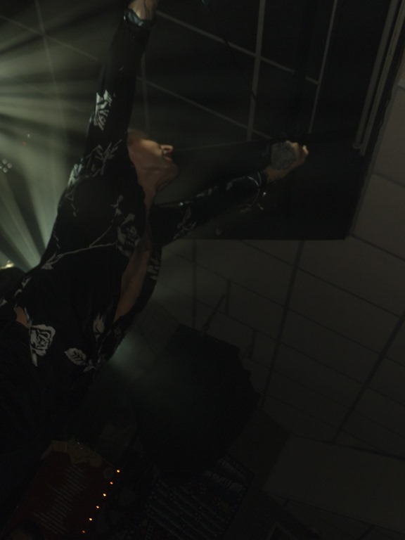 It’s a blur. Marshall is out in the crowd more than once and deliver his anguished hectoring from various points at the back of the auditorium for a lengthy spell. On returning to the stage, bloody bashes on his forehead, his shirt’s off, his thick leather belt’s off and he’s lashing himself with it, while standing on a monitor turned on its end. Welts appear before our eyes on his back and chest and he flagellates and the crowd frenzies.