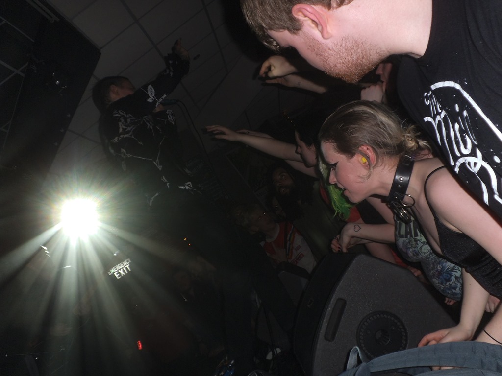 It’s a sell-out and filling out nicely early doors, and despite having been advertises as being in he community room, I’m elated to discover that it’s the (also sold-out) Alabama 3 gig that’s in there and that Daughters are playing in the (and it pains me to say it but it’s true) iconic main room. It’s a broad demographic, ad while there’s the inevitable proliferation of beards, the age span is broad, there are several Dillinger Escape Plan T-shirts and a gothy woman is sporting a ‘Visualise Total Annihilation’ Swans T-shirt like the one I’ve left in the laundry at home.