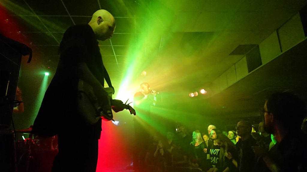 James is obviously the focal point, and he doesn’t stay still for a second. His intensity is unmatched as he pounces and pirouettes around the stage, eyes closed, sometimes perilously close to the edge, often dangerously close to tripping over leads or other kit. And this is no act: he relives every line of his most anguished lyrics, and every line pours pain of some sort or another. But none of this would work without everything else: Andy Macfarlane’s guitar carves heart-rending sonic sculptures, while the rhythm section is a powerhouse and the synths add all the texture. It’s not about the individual elements, though: the elements combine to forge something far greater than the parts.