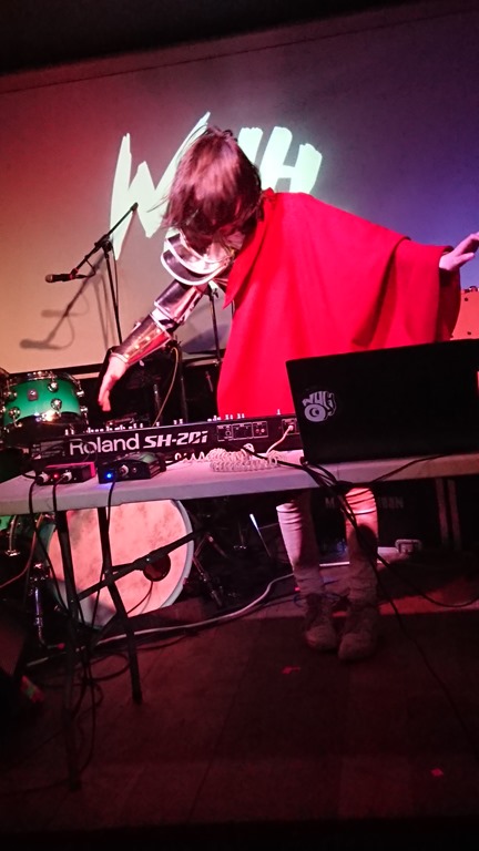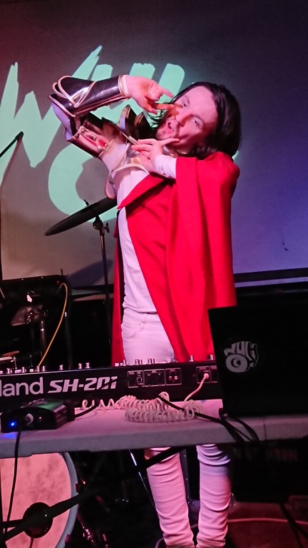 And so it is that Wuh Oh – the musical project of fellow Scot Peter Ferguson – opens tonight’s show with some thumping electronica: he’s dressed in a superhero cloak and has a bionic arm, and it’s all delivered with high theatre and elements of interpretive dance.