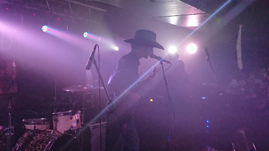 It would appear that that last time I caught Black Lagoons was back in the summer of 2017, when I remarked that the band – at the bottom of the bill – were headline standard. Seems they’ve just continued to get better in the time since, too, although if they’ve matured they’ve certainly not mellowed. The gritty blues-based sound has evolved into a kind of grainy Country/grunge crossover with snaking, twangy reverb-heavy guitar driven by a stonking bass and crashing drums. Bringing on the sax, the frenetic attack is more Gallon Drunk than Psychedelic Furs, and it sure as hell ain’t jazz. The set just builds and builds to a blistering, sweaty climax and a slow blues post-climax that winds down to the finish. And a hat makes for a great silhouette against a smoky backdrop, making for memorable visuals to accompany a memorable sound.