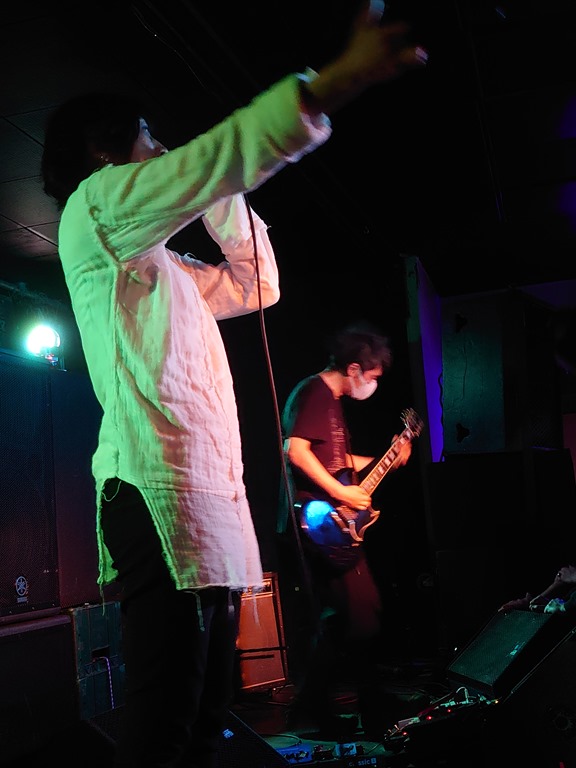 Mumbles don’t really benefit from the sound with their primitive (post) punk. It’s played with frenetic energy and packs so many tempo changes they can barely keep up with themselves. It’s an eventful set, where the guitarist/singer’s austerity trousers aren’t the only things worthy of note: technical issues lead to an impromptu clarinet sol, and things get a bit jarring Avant jazz in places. I’m on the fence as to how well it actually works at times, but ultimately, they emerge triumphant. The guys are visibly nervous and some songs seem almost beyond their technical ability, although that’s not remotely a criticism: listen not live recordings of bands in the 70s and 80s, and this is what bands sounded like live. With more or less every band emerging super-tight and polished, it sometimes seems as if something has been lost, and Mumbles won themselves a fair few fans on this outing.