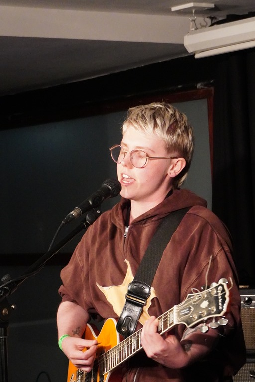 A solo artist with live guitar and vocals against a backing track, what we get is some sample-soaked post rock and alternative rock and synth pop, making for an eclectic set which sometimes feels a little uncertain of where it’s headed. The timing of both the guitar and the vocals are a bit out in places, possibly at least partly on account of the drums being so low in the mix. The backing is well-programmed when it’s fully audible, which is mostly during the electronic songs which occupy the second half of the set. But when paired with the guitar, it’s often largely submerged, and the sound is pretty muddy overall. There do nevertheless seem to be some decent tunes with a pop edge in amidst that thick, gritty guitar sound – whether it was supposed to sound quite like that I’m not sure. It’s very much a set of two halves, returning to the guitar for the last song.