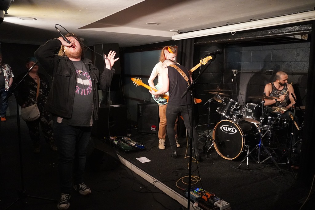 I don’t appear to have attended a gig at The Basement, underneath the City Screen cinema since September 2016, and as their website no longer exists and their Facebook Page hasn’t seen a new post in almost three years, I had assumed it was done as a live music venue. There have been a few significant and positive changes to the layout, but the lighting still isn’t the best. Still, it’s good to be here, and three bands for six quid – less than the price of a pint here – is a no-brainer for some Saturday night live music entertainment.
