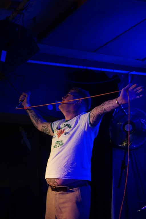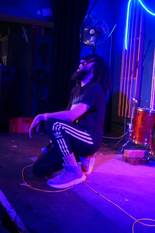 Irk’s set is a squalling blast of noise from beginning to end. The bass is simply immense. Recorded, it’s not immediately apparent that the sole instrumentation is drums and bass – and not only because various guests add additional detail in various form, but this means that on stage, the fact they blast out such a dense racket with so little only accentuates the impact. But that bass… the sound is pretty varied and big on texture, from the rib-rattling mid-range, compressed sound which resembled tearing cardboard to the bowel-quivering low-end, there’s substantial range. Meanwhile, Jack Gordon hollers and howls through a host of effects and distortion, and this show – like the album itself – was worth the wait.