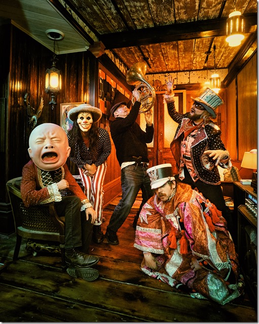 With UPSIDEYERHEAD, PLQ MRX deliver that racket. Their bio tells it that ‘From the depths of North Philadelphia’s underground comes PLQ MRX, a project operating at the intersection of abrasive noise rock, acid-soaked psychedelia, and warped funk’. Say what? We go on to learn that ‘Beyond the music itself, PLQ MRX cultivate an aesthetic steeped in excess, altered states, and grotesque carnival imagery. Their world is populated by surreal characters and exaggerated rituals, exploring pleasure, debauchery, and sensory overload. The band leans into both the highs and the ugly turns of the trip, embracing chaos as a core element of its identity’.