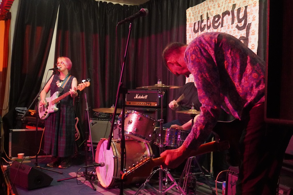 Suffering from the lack of a soundcheck, Knitting Circle spend the first couple of songs working on their levels, and even then, the sound is a bit muffled – specifically the vocals and guitar. But given that guitarist Pete is also the sound engineer, the fact that they pull it together is beyond admirable, and closer to heroic. Since whittling down to a three-piece, they’ve really focussed their sound, and following a spell of pretty intense gigging, they’re well-honed, and as always, an absolute joy to watch. As is often the case when Knitting Circle play a hometown show, there’s a new song: this time, it’s ‘Witch Folk’ which speaks of the thousands of women persecuted for witchcraft, forgotten by history. It boasts a particularly angular guitar jangle. They close with a quickfire ‘Losing My Eggs’, and while fluffing the false ending / intersection, recover with grace and good humour. Mistakes happen: it’s how an act deals them which counts, and Knitting Circle very much rose above and came out on top of all of the challenges presented to them tonight, proving that DIY is not a synonym for amateur.