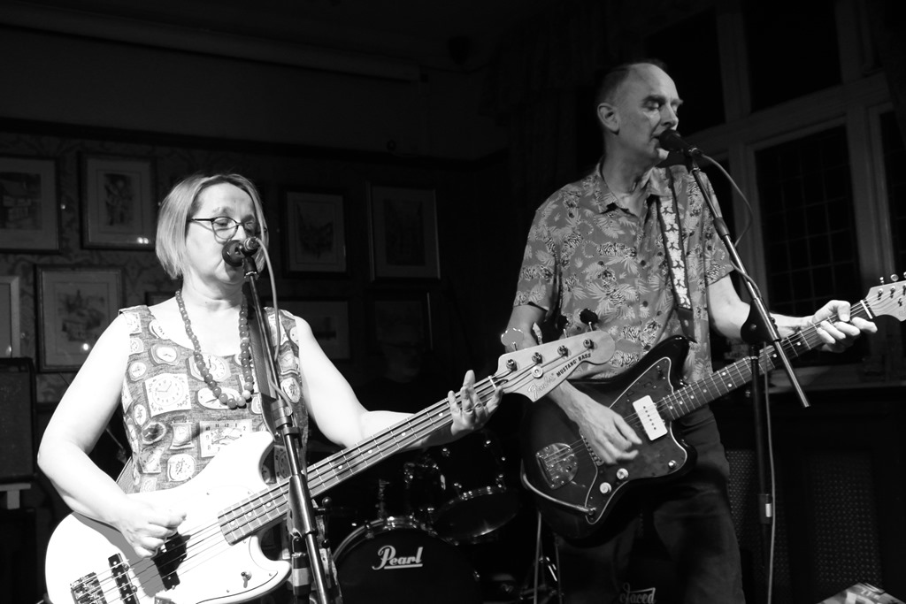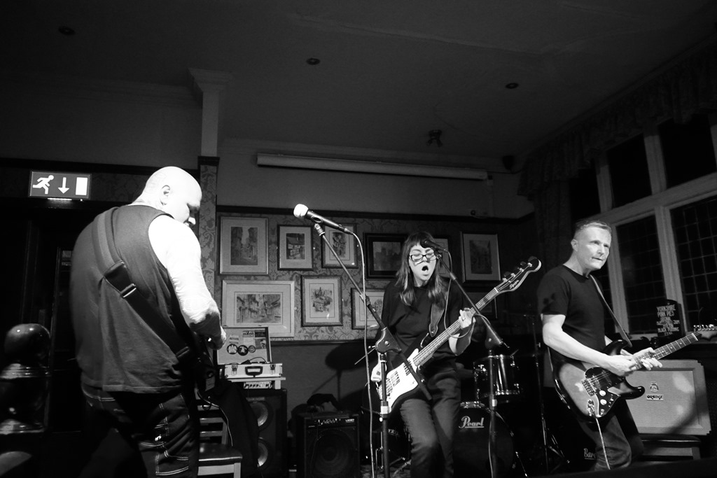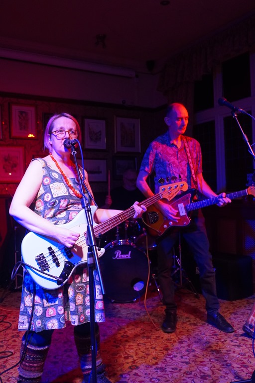 Knitting Circle may not be as punishingly loud, but their busy live schedule means that they’re super-tight, and looking and sounding confident. As well they might: they’re on fine form, and in terms of performance, tonight is a couple of steps up from when they played on the other side of town at The Fulfordgate WMC in February. While the vocals are a bit muddy-sounding, and Pete’s guitar is a little more midrange in tone than usual, muffling the Andy Gill-style trebly chop, but it still cuts through against Jo’s bass, which is nicely up in the mix and positively throbs.