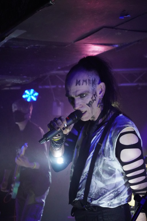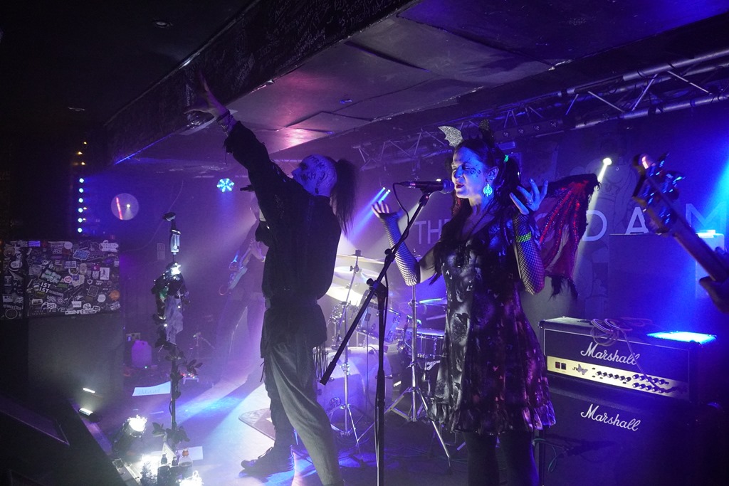 The InSect, who released their debut album As It Ever Was a week ago, have a much more elaborate stage show and a full band lineup. Despite the fact I’m a fan of drum machines myself, their performance strikes a huge contrast with The Scarlet Hour’s in terms of dynamics, volume, sonic density, and energy, and much of this is on account of the band-ness they present. In terms of presentation, they’ve a lot more going for them, too: The Insect are flamboyant and theatrical, and look comfortable acting up and bringing the show to the audience. Ed Banshee is a natural from man who spends a good portion of the set among the crowd, and Athena FireChild provides the perfect interplay. Instrumentally, they’re tight, and compositionally and stylistically, there are strong hints of Bauhaus. They go all out to put on a show, to entertain, with bright white lights and various other accoutrements adding to the atmosphere. But ultimately, it’s their energy that makes their set what it is.
