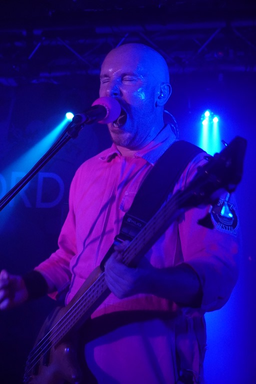 Space Pistol bring the riffs, and they do evoke Melvins, as well as Faith No More, and Hawk Eyes, among others. The three are decked out in matching orange boiler suits and the bassist, who has a board with about 36 pedals plays with his face. He also leaps and bounds – and yes, positively cavorts – about the stage with a flamboyance that’s uncommon to a bad that are this big on hefty riffs. There are false endings galore, and at one point they lock statue-like positions and maintain silence for maybe a good twenty seconds, during which time you could hear a pin drop. They absolutely love this, to the extent that it seems that this moment is a career high point for them. Since they’ve come all the way from Milton Keynes for this, we’re pleased that York is a memorable show for them, and I’m pretty sure they’d be welcome back up here any time.