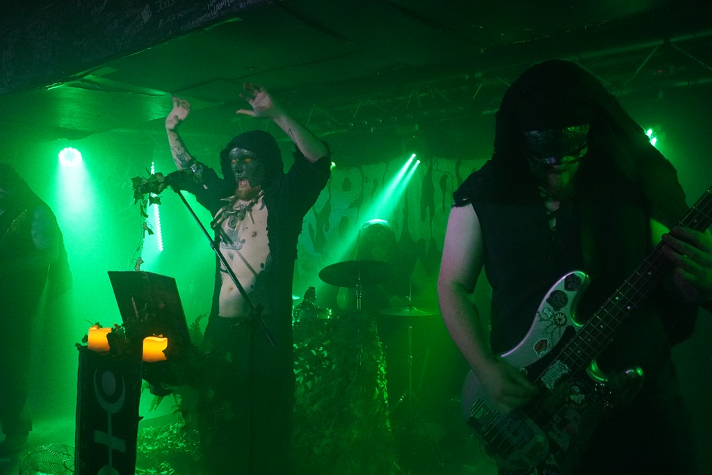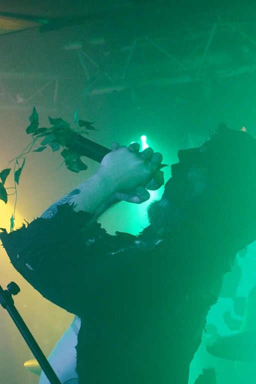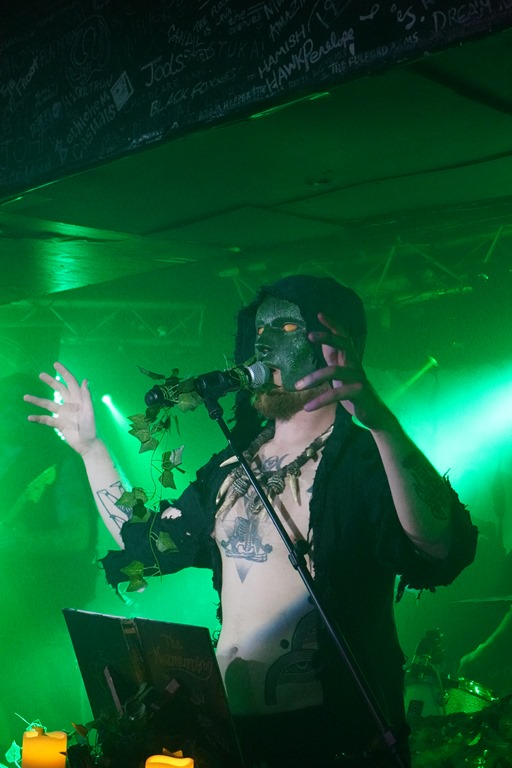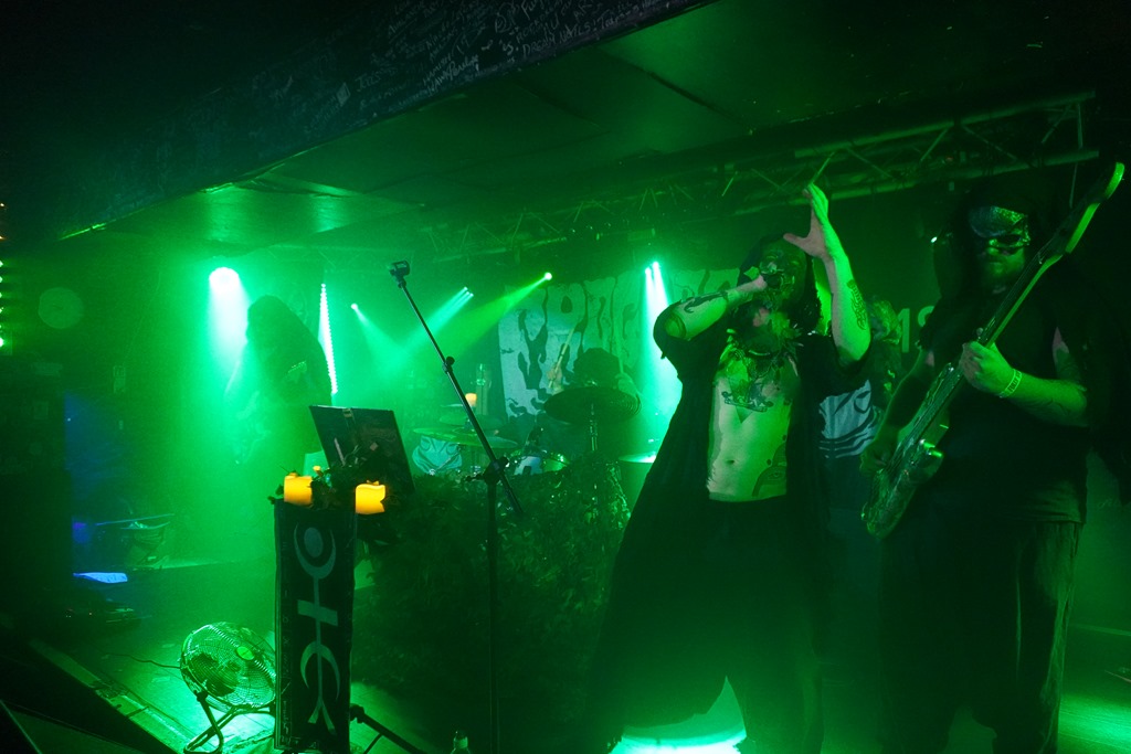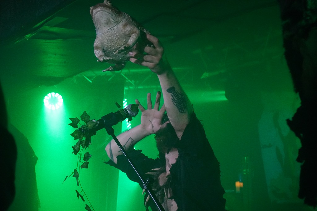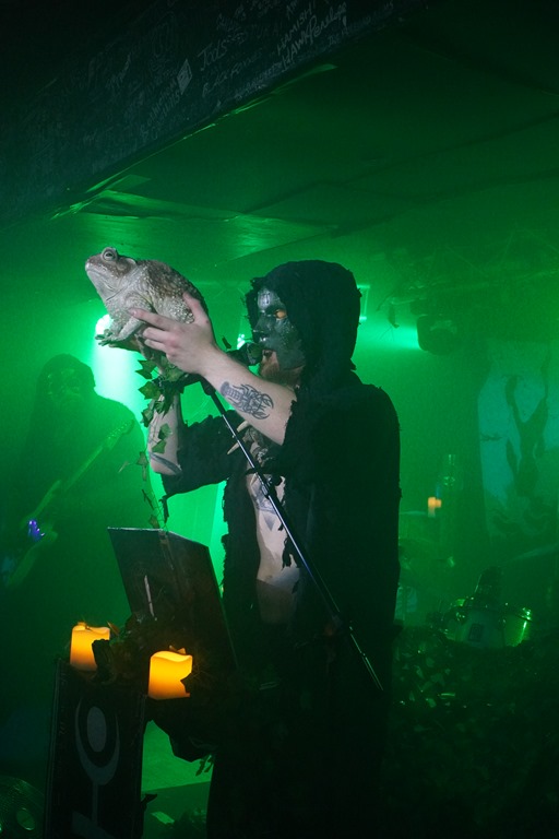 They also put on a great show. It’s no huge development on the last time around: their website positions it as follows: ‘Returning with brand new masks, costumes, and a 6th studio album, Froglord deliver another massive offering of amphibious swamp doom. Recorded live in the studio in a single take, Lower & Slower briefly pauses the band’s concept storytelling of the Tale of The Froglord saga, instead revisiting six previously released tracks from across their discography’. And the fact is, it works: tonight’s performance feels very much like a consolidation, and they seem particularly focused, the set’s structure absolutely honed to perfection in every way. They drop a powerful cover of ‘Iron Man’ early in the second half of the set, and in many ways, this speaks for itself. The bassist plays wearing a frog glove puppet for a while, and after the ritual circulating of the giant rubber toad later in the set, said toad is then used to bash bass strings before eventually tucked in the crook of an elbow in a more friendly fashion for a time.
