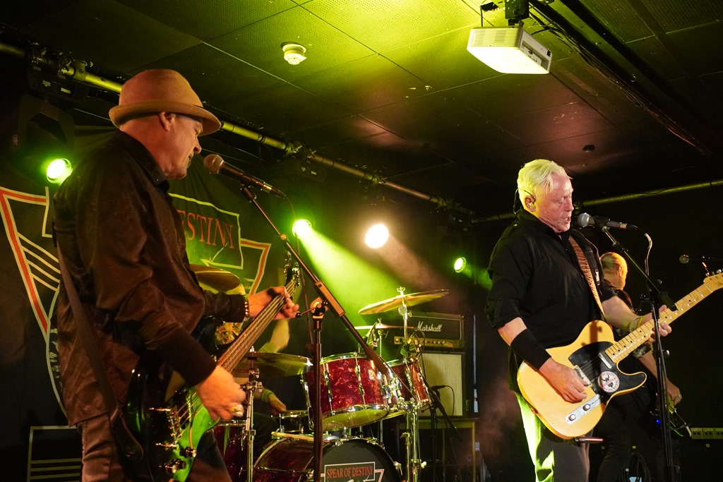 For many so-called ‘heritage bands’, the gig circuit can be trail of diminishing returns – then again, for others, the gigs are bigger now than in their heyday. Nostalgia is a powerful market, but one that often tapers off as the fanbase ages. Our older population may be expanding, but that doesn’t mean they’re all up for gig-going in their retirement years. Spear of Destiny sit in the middle of this range: they’re not playing the 1,500-2,000 capacity venues of some of their peers, but they’re packing out smaller venues, such as this one, often. You have to wonder if Kirk Brandon can even remember what his home looks like given his intense touring schedule, if not with Spear of Destiny, then, more recently, with the resurrected Theatre of Hate. They only finished their Janus tour in June, and here, they are, back on the road after barely time to do the laundry and restock the merch. The frequency of visits to destinations with smaller demographics does nothing to diminish the attendance, either: the fanbase is hardcore, and they do seem to be drawing younger people in, too, as interest in the bands kids’ parents listened to appears to be on the rise. I’m not going to claim that the 80s and 90s were better than now for music – not least of all because I don’t believe that’s the case, despite it being harder to find stuff now if you want to escape the algorithmic force-feed – but there was something about those times that’s lacking now, and it’s not just innovation. Politics and protest seemingly had a more central place then, too: in recent years have