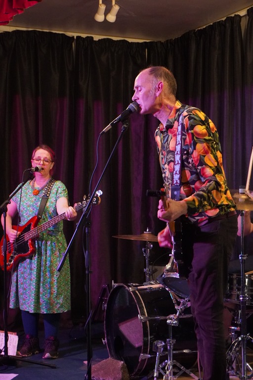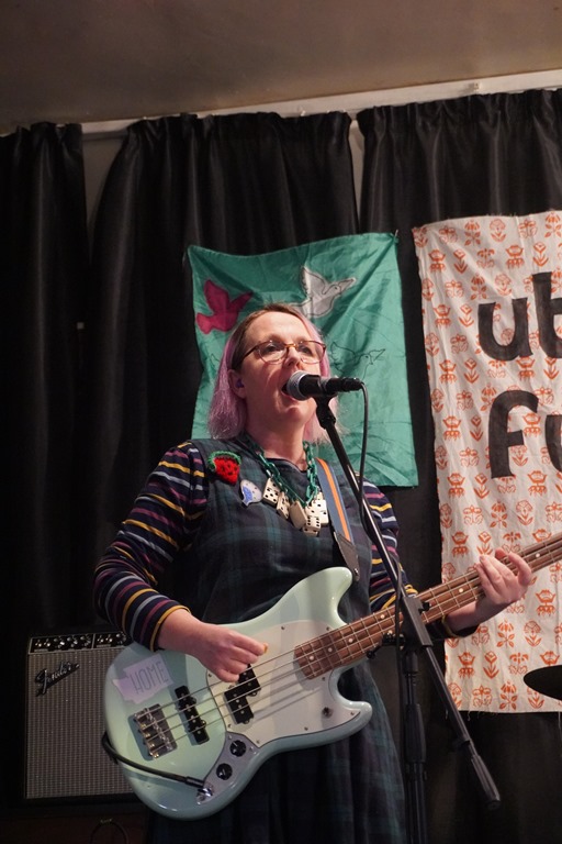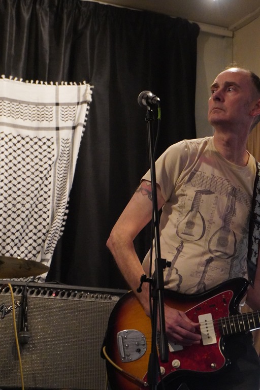 In contrast, Knitting Circle never fail to deliver, and seemingly find additional cylinders to fire every time they play. Even though reduced to a three-piece in recent months, they charge forth, sonically undiminished, Pete Dale’s choppy Andy Gill / Wilko Johnson influenced guitar slicing across Jo’s strolling basslines. Their songs are songs which touch on a swathe of sociopolitical issues and – now (semi) famously, after a BBC feature – issues rarely broached, such as the menopause, the topic of ‘Losing My Eggs’. Because things are running behind time, their set is abridged, but they still manage to open with a new song, closed their set with the rousing and apposite ‘Safe Routes’ and pack in no shortage of established corkers along the way. They’re raising awareness of menopause, they’re anti-fox hunting, they’re opposed to genocide and war in general, and are clearly a menace to society. They absolutely get my backing, and are without question among the finest of the city’s representatives, at a time when York is spawning some fantastic bands.
