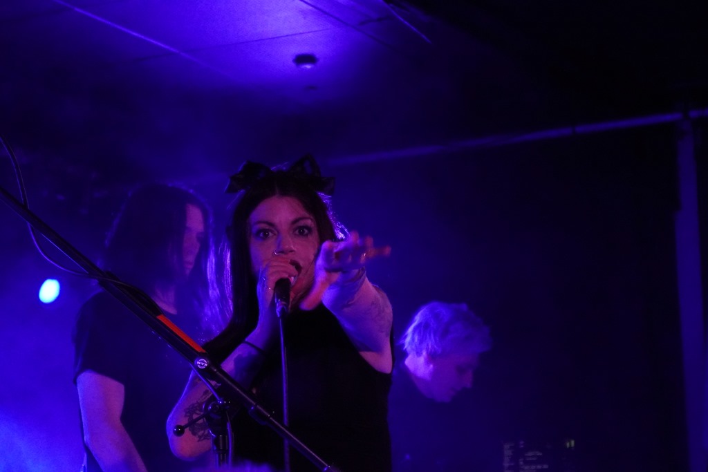 One thing that’s apparent is that there are people here for all of the acts – people who are keen, too: within five minutes of the doors opening, the front two rows are packed solid and people aren’t budging. From experience, this does seem to be something of a goth gig thing: the level of dedication and devotion is way up there. But the demographic is a broad mix, and it does seem that for all the hardcore fans, there are a lot of casuals in tonight. Quite how they’ve come by The Birthday Massacre is hard to tell, but given how crisp and poppy Pathways sounds in contrast to the full-throttle industrial drive of the live show, the chances are a fair few of them will be in for a shock.