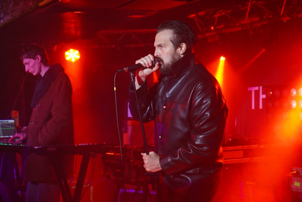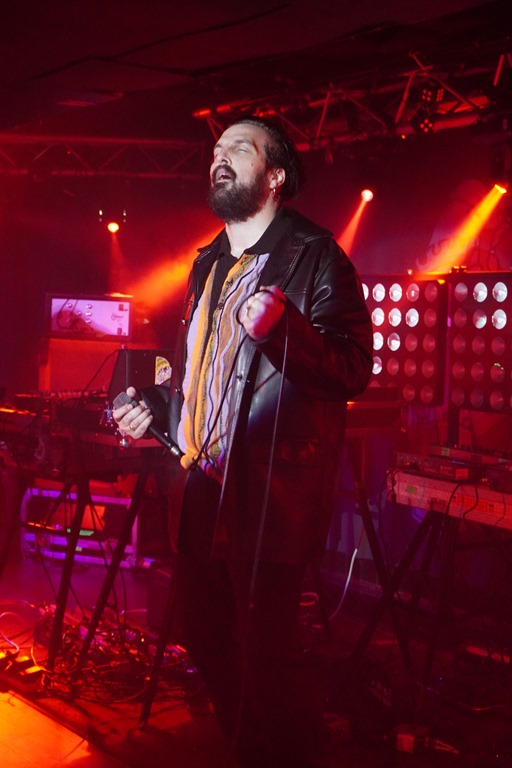Before we would get to find out, there was the equally intriguing support. The Eighties Matchbox B-Line Disaster are one of those acts who may have only attained cult status during their time together, but it’s one which has expanded since their demise. They were always a band destined to implode, as was apparent when I witnessed a particularly fractious gig here in York circa 2007. But this was always a band which had derangement and volatility wired into their makeup. Guy McKnight formed DSM IV in 2018, and they’re an altogether different proposition, trading in gothy electro with some tidy guitar textures woven into the fabric of the songs, and Guy seems altogether more settled. It’s all relative, of course, and he ventures into the crowd on numerous occasions, and at one point around the middle of the set, tosses mic stand over, drops the mic and busts some tai chi moves. It’s a solid set, both compelling and entertaining, and they’ve got some tunes, too.