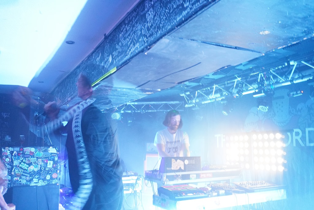 Soma Crew always seem to start with a slow, sparse number, and sound a bit trepidatious, awkward, uncertain. And tonight is no exception. I find myself thinking ‘ooh, is this even in key?’ With a substitute drummer, and Soma Crew being Soma Crew, the set is off to a slow, hesitant-sounding start, but building to a surging swell, a monolithic throbbing drone. I’ve drawn the comparison to Black Angels before, and the parallels are never more apparent tonight. With three guitars plus bass, and with everything but the vocals coming straight from the backline, they’re loud, and the sound fills the small space and then some. When they hit their stride, they’re phenomenal. Toward the end of their set they drop ‘Roadside Picnic’ and the sound is simply huge, and this, this is why we’re here.