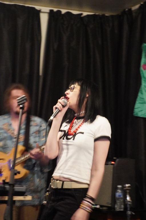 All Ashore pack five bodies onto the little stage and bring some uptempo, vaguely twee late 80s / early 90s indie vibes. They’ve obviously put some co-ordination and consideration into their outfits, and they’ve got some very bouncy friends along who make for a lively front row.