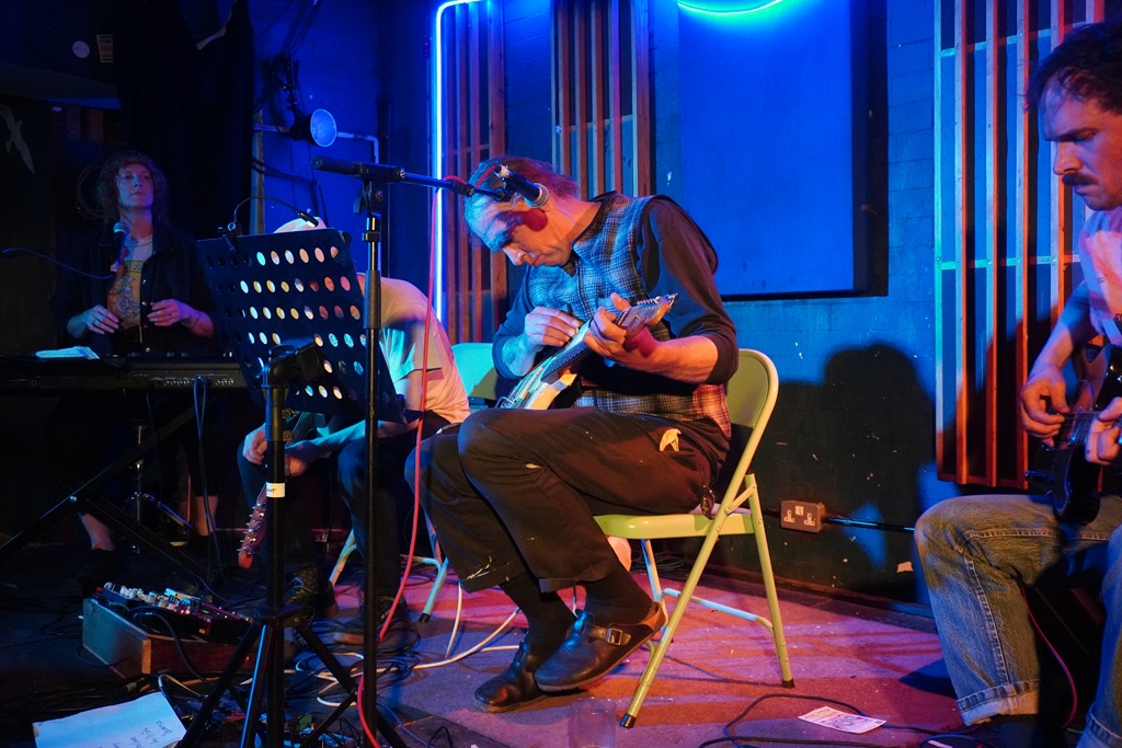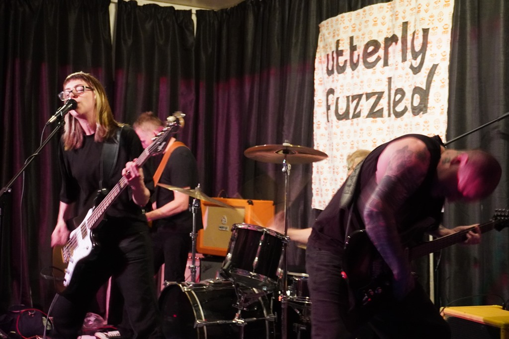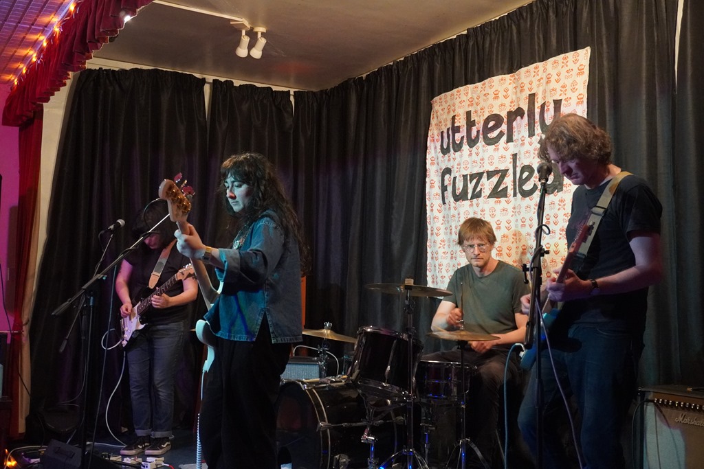The first act on the bill is so new and emerging that they didn’t even have a name until about a week before the event, and so suffice to say that Chaffinch were an entirely unknown quantity. It transpires that they’re a new permutation of Knitting Circle, a band centred around Jo and Pete Dale, who also happen to be the movers behind Utterly Fuzzled events. Tjeir set is clearly a work in progress – Jo confessed that the lyrics to one of the songs, on a sheet of paper in front of her, had only been completed that morning. But they show great potential. As my cursory notes attest, there’s ‘jangle, post-punk, angular, Band of Susans riffiness, elsewhere more 80s indie, a bit Wedding Present. Mathy dynamics. Interesting and a very promising first outing.’ It’s a fair summary that requires little expansion.