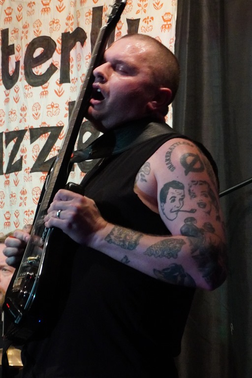 It’s sort of tongue-in-cheek but not really rockabilly country hoedown hillbilly bollocks. There are people down the front getting down with some boisterous line-dancing moves, and there are plenty who are digging it, but I just can’t get on board with this is corny, gimmicky shit, and the fact they play it well doesn’t get them a pass. All the whooping and whelping is high-energy and perfectly executed, but… It’s just so much cheesy turd-polishing, and the singer’s smug, grinning, cheeky chappie, eye rolling delivery only makes everything so much worse. I found myself feeling not irritated, or annoyed, but – most unexpectedly – angry.