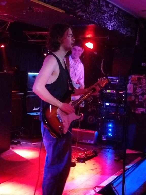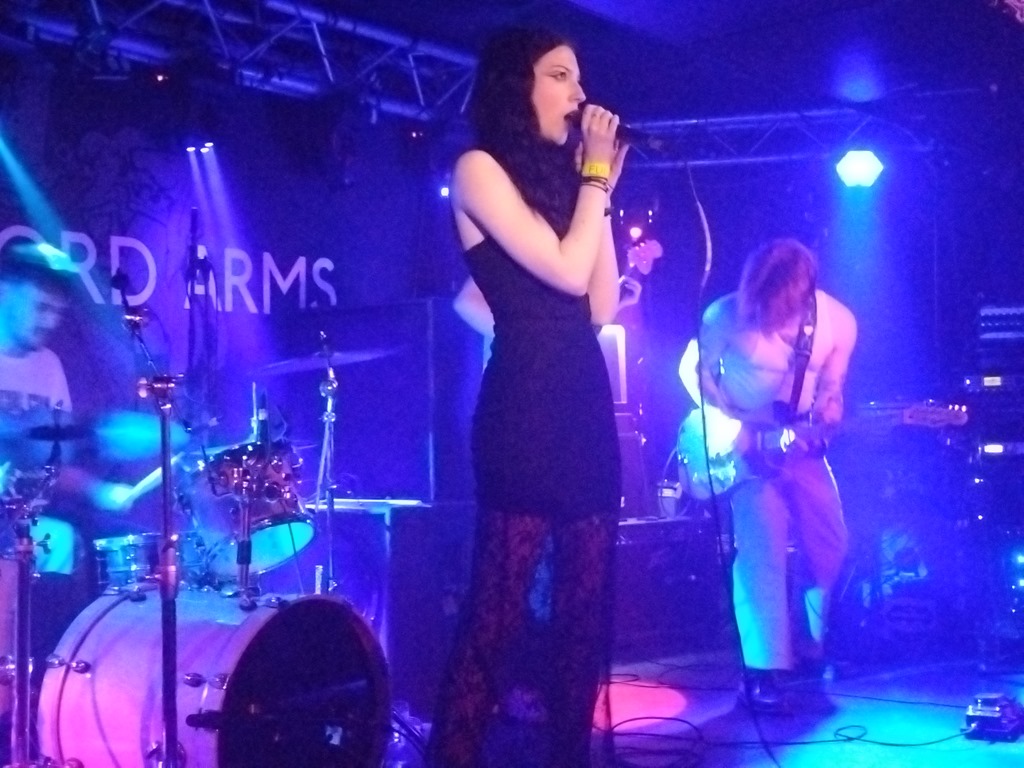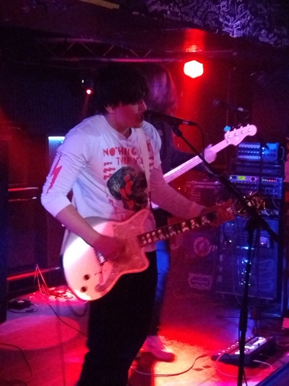 Leading tonight’s Hull invasion are Candid Faces, a tight and energetic female-fronted five-piece with a penchant for angular punk/post punk and occasionally leaning into indie, sort of Bizarro-era Wedding present comes to mind. They’re four guys in jeans and t-shirts (and a vest) plus a gothy front woman, and she’s nonchalant while they’re bouncing around like peas on a drum, the calm in the eye of a sonic storm. ‘Telephonophibia’, the title track from their EP, is a bit Bondie, and they draw the set to a close with a brooding slow-burner that has epic simply oozing from every bar. They’re a class act and tight as anything.