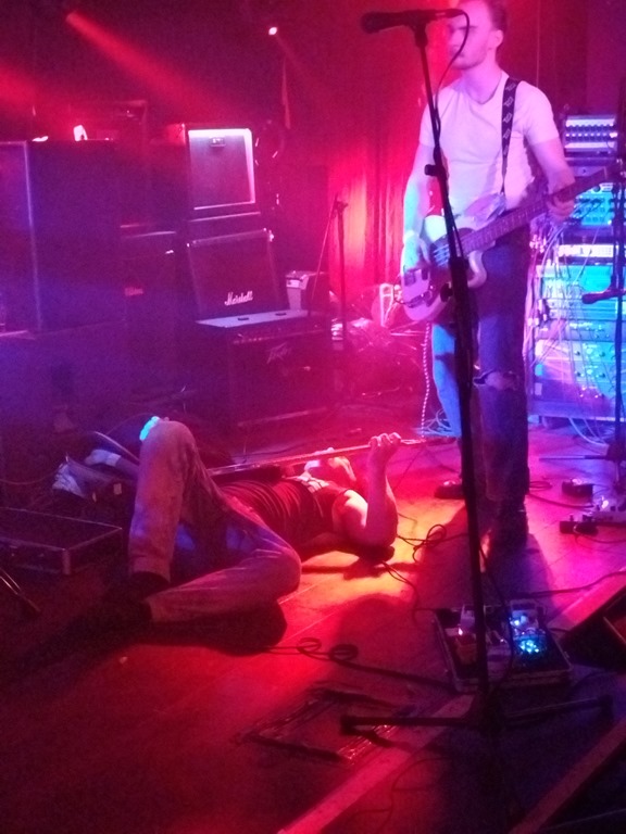 Bedsit are the reason I’m here. Having given some solid thumbs-ups to their releases and missed their last appearance here in York, I was keen to witness the force of their live show. Bloody hell. Arriving in a monster wall of feedback, Bedsit are straight into frenetic hardcore territory. A minute in, the bassist is in the audience, beer is being slopped, and he’s a one-man mosh pit. ‘Click Track’ is melodic, before, immediately after, ‘Eloquent’ goes In Utero Nirvana. Single cut ‘F.I.D.O.’ is a standout in a set of standouts. They make a serious racket, but it’s not without some thought, and what’s more, they showcase a remarkable stylistic range, while at the same time remaining coherent throughout the set. I wonder if the mic’d-up floor snare will take off as a thing. With just seven minutes left, they elect to close with the seven-minute slow-building shoegaze of ‘Happy’. Baritone vocal and crawling indie starts early Pulp and winds up full-on paint-stripping My Bloody Valentine wall of noise. You have to wonder how long these guys will be playing support slots, or venues of this size. I’m reminded of the fact that in recent years, I’ve seen Benefits and – another Hull act – BDRMM – play in this very venue, since when both acts have exploded. And again, I’m reminded that this is precisely why we need these venues, these gigs. I have so many friends recall the time they saw bands like Franz Ferdinand, Editors, playing 150-capacity venues less than a year before they broke.