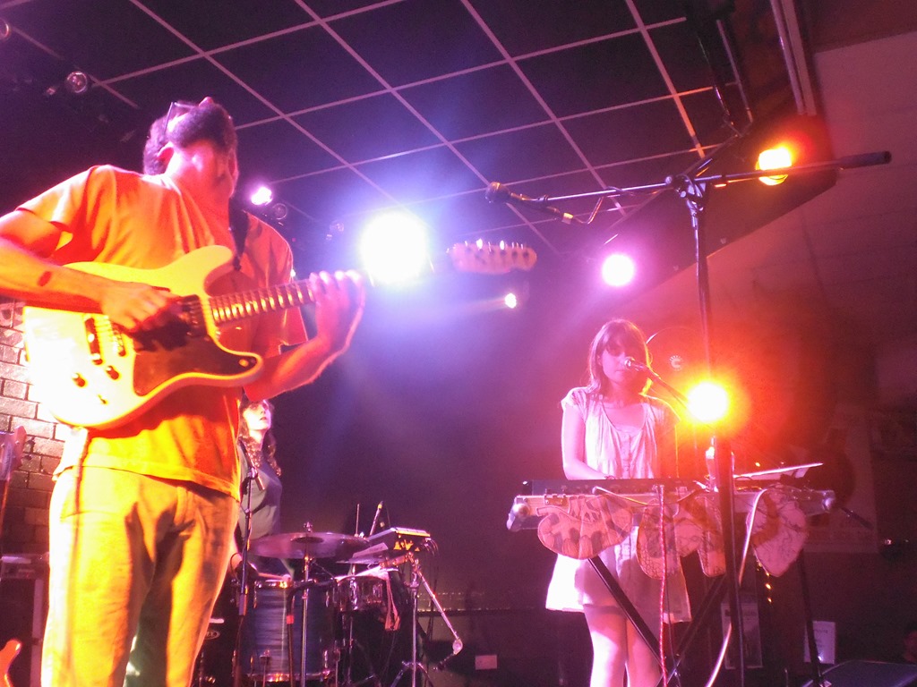 The setup is sparse, but effective: retina seering white lights are directed forward toward the crowd, and the punishing glare is a fitting backdrop to the trio’s eardrum-busting volume. It’s immense, intense, and powerful, but wouldn’t work as well without Tasy Hudson’s powerhouse percussion, which is heavy and so, so slow. Seconds elapse between beats. Every crushing chord is the sound of breaking. Wattie’s vocals sit somewhere between Bjork and Alison Shaw of Cranes – manic and vulnerable – against the pulverising chords matched by the most punishing volume. Despite the absence of a bass guitar, there’s a gut-gripping low-end churn as they grind out a sound reminiscent of the sawing trudge of Swans circa 1986. My skin crawls and I itch all over. There are no breaks between songs, just more feedback and sustain. Ball and Wattie squeeze more existential pain from their guitars by jamming necks against amps and bending against the headstock: Ball gives a masterclass in brutal guitar work. They don’t speak lest the spell might be broken, and the audience is silent, stunned, awed.