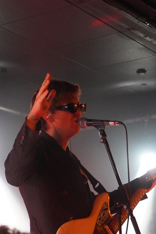 The support is an Ian McCulloch wannabe in a knee-length coat doing sub-mid-80s Psychedelic Furs lifts with a goth tinge. The drum machine is nicely up in the mix and the sound is great, even if the songs are only middling at best, and wince at worst. and it’s mostly backing track. But the Jarvis Cocker moves are overdone, suddenly throwing shapes in the most uncool fashion, sometimes going for a power pose or something a shade more aggressive and all the more incongruous, and the shades are off and back on and off and I again and the cringe only increases as the set progresses. It’s one of the longest half hours of music, and probably the most painful since the band supporting A Flock of Seagulls at The Brudenell a few years ago. It’s a rare talent to be this technically competent and so fucking embarrassingly awful at the same time.