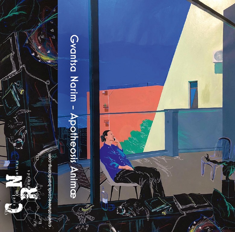 Having recently celebrated a decade of diversity, Cruel Nature Records continue to release a broad range of non-mainstream music – and the range couldn’t be more pronounced than placing two of May’s releases side-by-side: Gvantsa Narim’s latest offering, Apotheosis Animæ exists on another sonic plane form the grating industrial noise of Omnibadger’s Famous Guitar Licks Vol. III. They’re a sort of Yin and Yang: the world definitely needs both, and I personally need both, too, and it’s testament to Steve Strode’s singular commitment to releasing music of quality regardless of style or genre that they can both find a home on the same label.