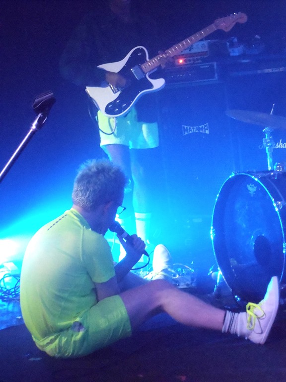 Irk are pretty fucking serious, too. It’s barely been a fortnight since I caught their set in Manchester supporting Berlin’s heads, and while they were pretty ripping them, tonight they really do take things to another level. Of course, when I previously stated that they sound like fellow Leeds band Blacklisters, I meant it as a compliment: Blacklisters are one of my favourite bands of recent years. They’ve delivered two gut-wrenchingly hefty albums and are one of the most consistent live acts you’ll find. But it’s on this outing that I first truly appreciate Irk in their own right as the drum / bass / vocal trio lumber, lurch and piledrive their way through a full-throttle set. Jack Gordon – an affable, articulate chap off stage – comes on like a man possessed, hurling himself about the low stage amid crushing bass riffs and powerhouse percussion. While the power trio format is often lionised as the optimal band configuration, there’s even less room to hide when there are only two instruments and a vocalist. And so it is that Irk are tight as hell and double the intensity of the playing to compensate the absence of instruments and bodies on stage. In contrast to Super Luxury, here’s little by way of over showmanship on display here, and instead it’s all about whipping up a blistering intensity through directness and unadulterated force.