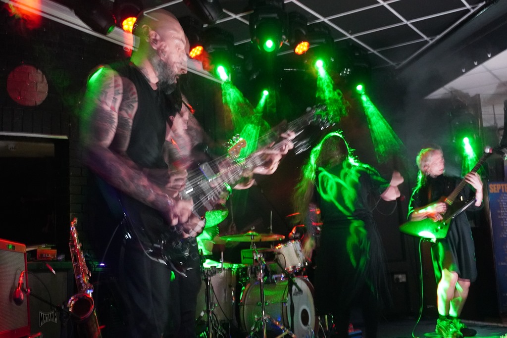 There are lengthy, hushed instrumental sections, and when they go heavy, the pace is considered, and they favour detail over distortion. Vocalist Natalya spends most of the set rocking back and forth while facing the drummer, and each of the five players seems to be immersed in their own space as they crank out a wildly inventive mix of post-rock and post-metal, with black metal vocals and a dash of jazz, courtesy of some scratchy sax which really adds to the rich tapestry of their atmospheric set.