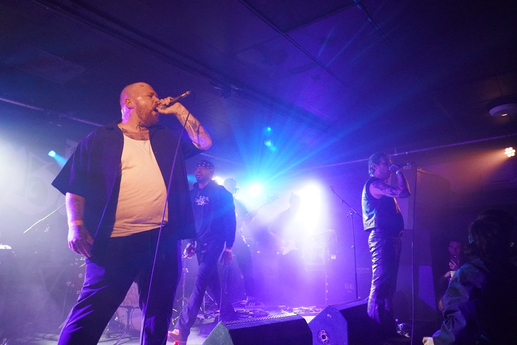 Their second song is a cover of The Prodigy’s ‘Omen’, and it’s the best song in the set by a mile. With their three MCs, it’s like watching Limp Bizkit fronted by a nu-metal version of the Village People… It takes a particular type of tosser to wear boot cut pleather jeans and a leather waistcoat, not to mention while chewing a toothpick. They spend half the set yelling for us to ‘Make some fucking noise’ ‘put your hands up’ and ‘let’s see your fucking energy’. Yeesh. My energy is at the bar.