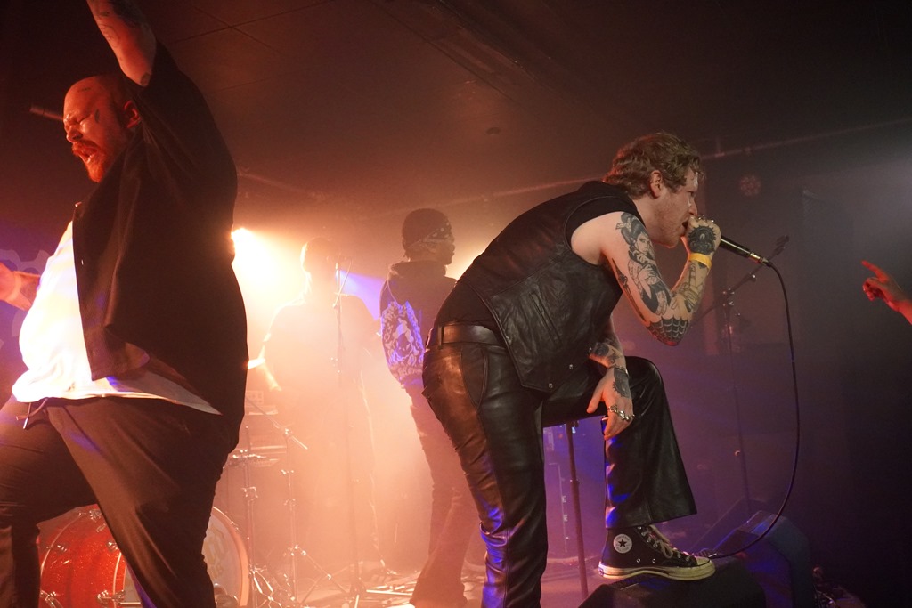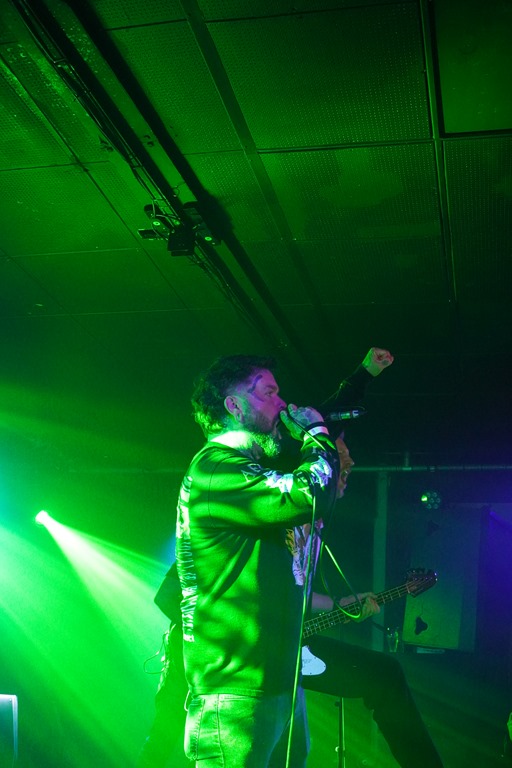 It seems hard to credit that I’ve witnessed acts who can be seen or claim to be channelling The Beastie Boys twice in a fortnight at rock gigs, but here we are, bracing ourselves for Sleuth Gang, York battle of the bands winners who promise ‘the harder edge of hip hop mashed with Beastie Boys, early punk, grime, and the experimental post-hardcore/electronicore of Enter Shikari.’ There’s a couple of bellends – one with a mullet – leaning all over the monitors and slopping their pints on the floor before they even start. Sure enough, they only seem to have about five fans, and said ‘fans’ are intent on barging one another so hard to see if they’ll stay up or career into the crowd outside the ‘pit’. The band keep calling the audience forward, but they end up stepping back to make room for their antics instead. The guitarist leaps off the stage, sinks half of mullet guy’s mate’s pint and then throws the rest of it over him. He wipes down his tracksuit top, smiling like he’s just been enunciated.