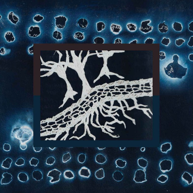 ‘Woven Mother Aflame’ brings brooding atmospherics split asunder by explosive percussion – a snare that has the power to split skulls cutting through serpentine strings and heavy, resonant bass reverberations which hang in the air, before the gentler ‘Breathing Shards’ fades electronics into a strummed acoustic guitar. Breathe… out. But all is not comfortable. The quavering vocals – not quite falsetto, not quite any specific range, but warbling, tremulous – quiver, uncomfortably atop and amidst the multi-layered backdrop which slopes and slides and traverses through starless space as basslines stroll and amble sedately.