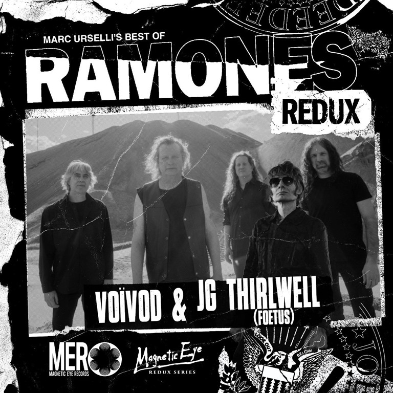 For the first single from Marc Urselli’s Best of Ramones Redux that will be released parallel to the forthcoming MER Redux Series instalment Marc Urselli’s Ramones Redux, Canadian space metal legends VOÏVOD have teamed up with no less legendary Australian post-punk vocalist JG THIRLWELL (FOETUS) to pay a mind-blowing tribute to the most fitting RAMONES’ classic ‘Zero Zero UFO’. The original of the song was released on the US punk rockers’ eleventh full-length Brain Drain (1989).
