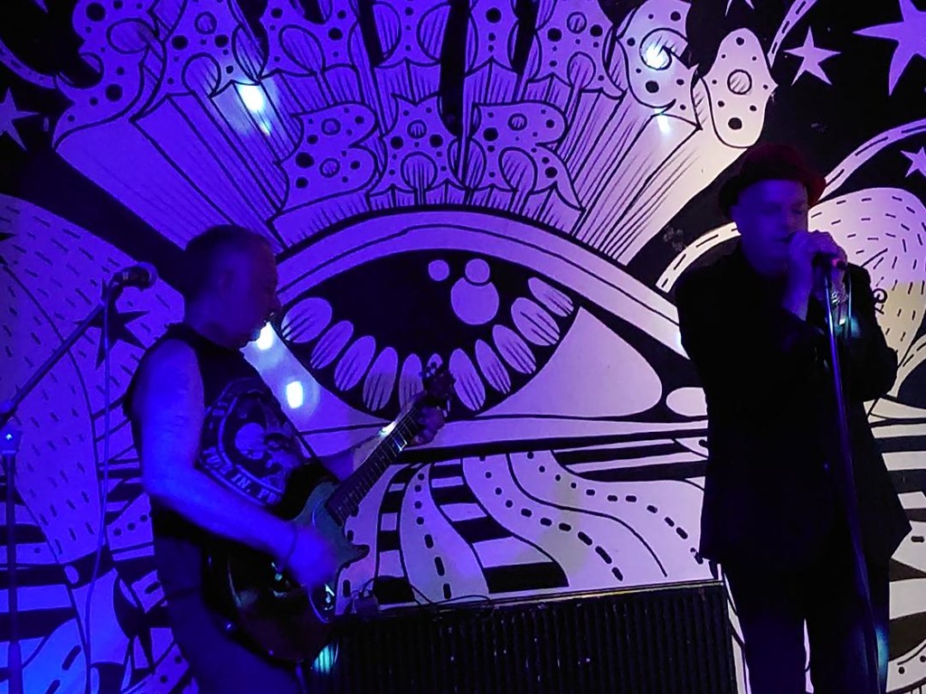 Oops. Sweaty Fester is Terry Macleay, the singer with Power to Dream. He plonks his red felt hat on and steps into character. Well, he tried, but he can’t stop grinning and gurning. He’s one of those flamboyant goths. Grating dense, dark ambience heralds the start of the set. They open with a cover of Alex Harvey’s ‘Faith Healer’, released as their second single back in the day. It’s surprisingly soulful, more Depeche Mode than Foetus.