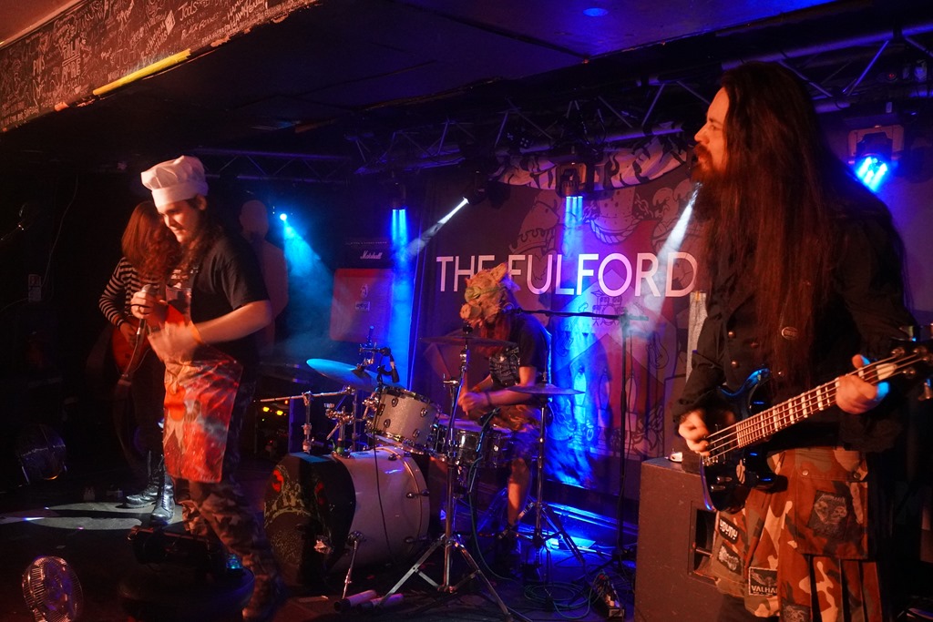 The arrival of the first act, Chefs Kiss, who describe themselves as a ‘comedic food themed slam metal band’, brings a fair few forward, and it’s clear that they’ve brought their mates with them. There was a time when I may have viewed this in a rather sneery way, but what matters, I realise these days, is that if they’ve got people in through the door, then it’s all to the good.