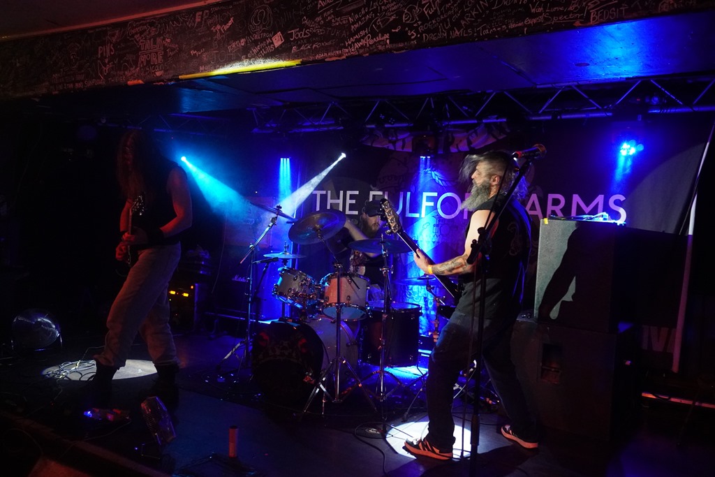 Just as Chefs Kiss were a shade shambolic, so Kraken Waker were finely honed performers, clearly with not only hours of rehearsals behind them, but also a lot of gig experience. They seriously were incredibly tight. Their sound is very much classic US rock at the heavier end of the spectrum, with a strong, dirty, stoner leaning. I had afforded myself a chuckle while they checked their mic levels: the three beardy longhairs all came on with affectations as if they were from Texas. But piling into their set, they were instantly impressive, and it soon became apparent that they were unapologetic Geordies, with strong songs about being drunk, smoking weed, and wanting all the billionaires to fuck off to Mars. Quite possibly the band of the night.