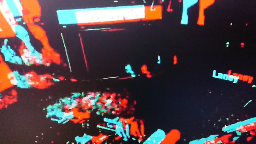 Stuart Chalmers takes us on a mesmerising tour of a cave, before Otherworld bring gloopy, cracking electronics accompanied by swirling pixelated patterns that aren’t exactly easy on the retinas. It’s low-level noise that’s centred around slow-, hypnotic pulsations. It’s pitch-black in the room now bar the screen and I’m staring fixedly at the shifting shapes as the sound ripple around me, and the experience is quite gig-like until Mrs N returns an extension lead, which isn’t quite the same as being handed a final pint before the train.