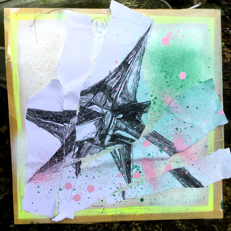 Sirens and birdsong and field sounds drone and fade by way of a backdrop to the spoken word opener, ‘Spontaneous Bin Lake’. It sounds like having muttered a few observations into his phone on a windy day, Theo stops for a bite to eat and a drink, and, leaving the phone recording in his pocket, manages to record about seven different sources n top of one another, and it bleeds into the scratchy, scrapy scribblings of ‘Oxfam Tulpa’.