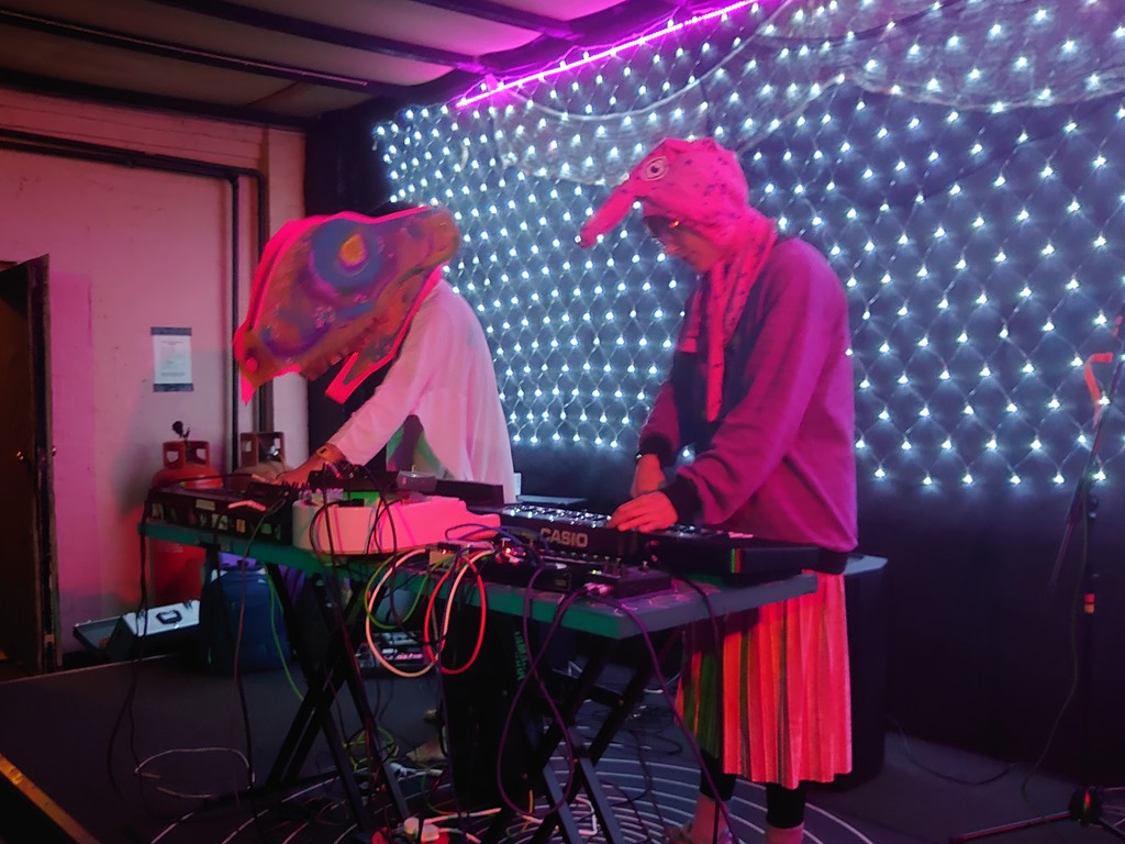 The second act, Vile Plumage, make like performance art, but struggle to keep straight faces, like they know this is audacious and preposterous. The gloved hands over faces cover grins disguised as menacing smirks. Stop start blasts of noise judder and thud. A rattling bean tin. We got given pebbles to toss into a bowl, and it was all quite bizarre and confusing, but entertaining in a strange and ritualistic way.