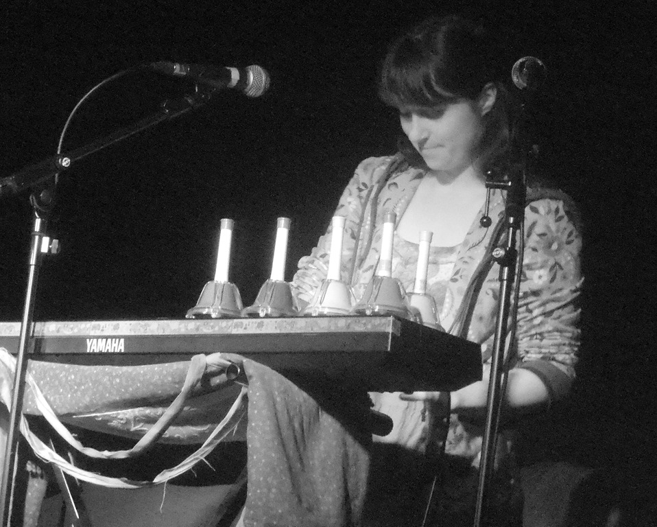 Two of tonight’s acts I saw only a few weeks ago, and when Mayshe Mayshe opened up for Living Body (for whom Shield Patterns were the main support) at the Brudenell in Leeds, I was charmed by her lo-fi minimalist pop tunes. Tonight’s set confirms that the bells, whistles, mini-pianos and hair-dryers aren’t gimmicky features of a novelty act, but genuinely useful features of a sound that’s spurred by innovation. Her songs are beautifully crafted examples of quirky bedroom elecro-pop. But for all the sparseness, there are some dense bass tones.